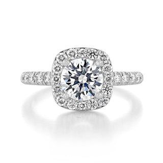 1.50CT Round Cut Halo Moissanite Engagement Ring in 18K White Gold
