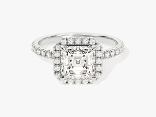 1.50CT Asscher Diamond Halo Pave Setting Moissanite Engagement Ring