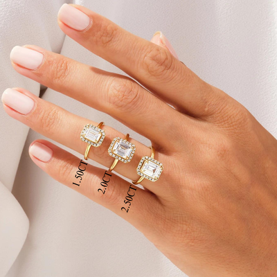 1.50CT Emerald Diamond Halo Moissanite Engagement Ring