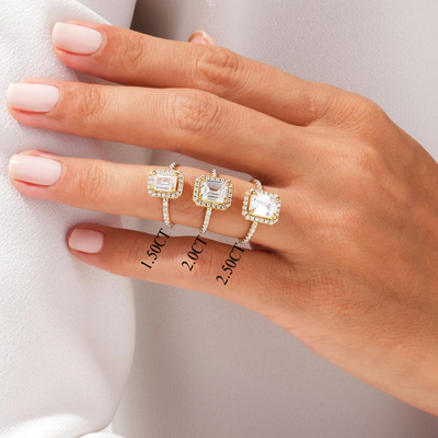 1.50CT Emerald Diamond Halo Pave Setting Moissanite Engagement Ring