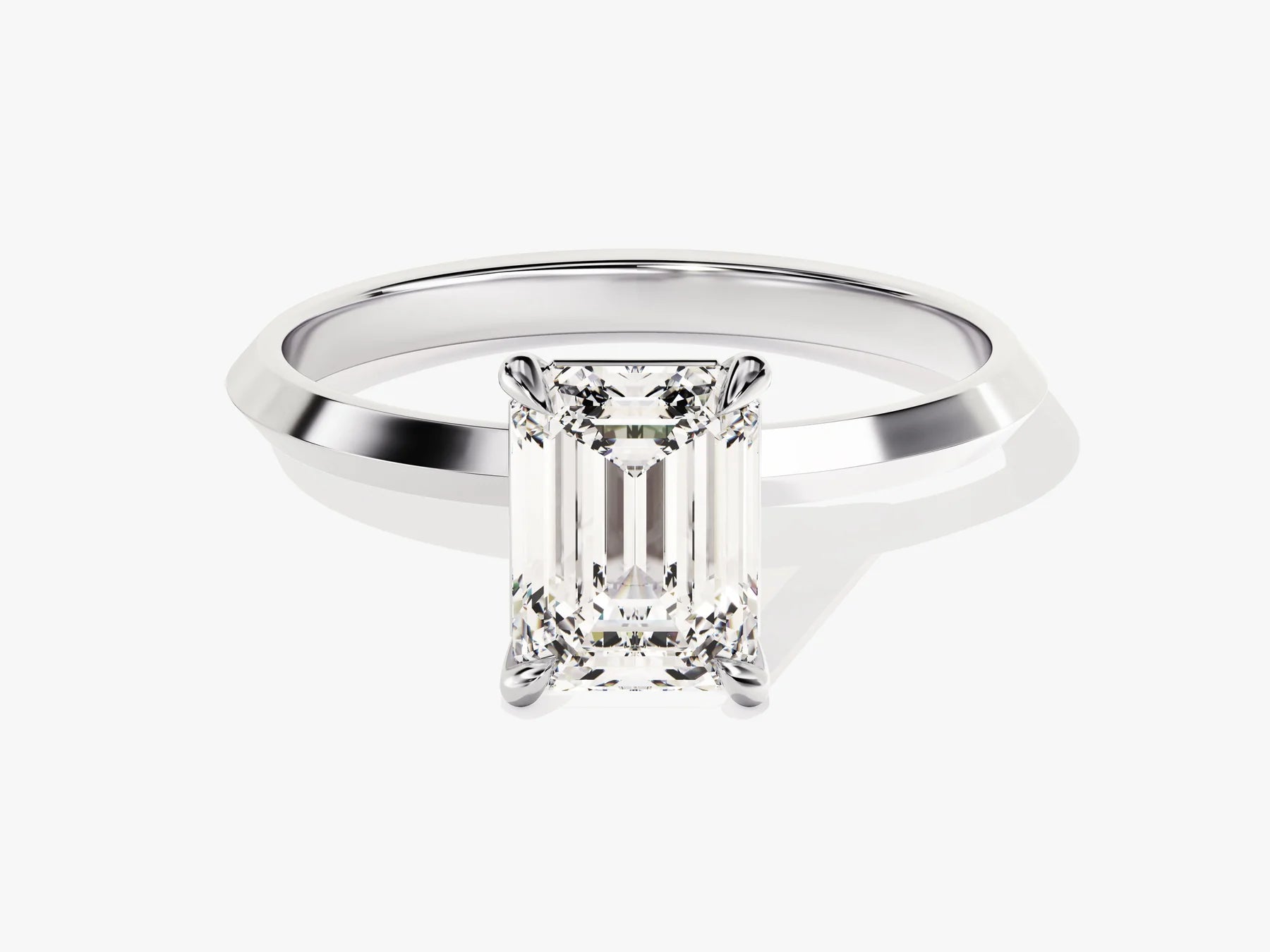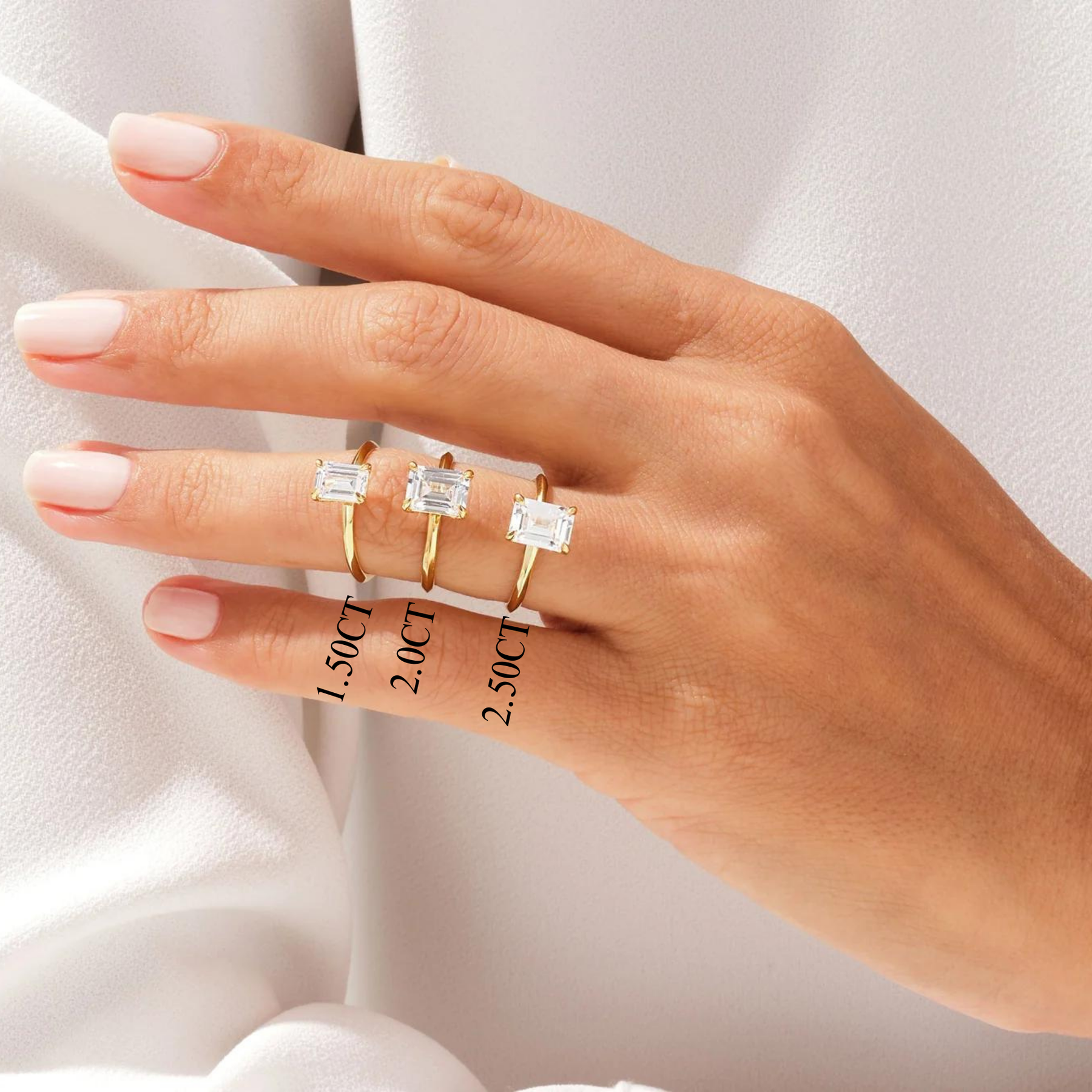 1.50CT Emerald Diamond Knife Edge Solitaire Moissanite Engagement Ring