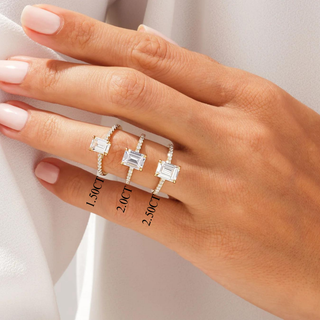 1.50CT Emerald Diamond Pave Setting Moissanite Engagement Ring