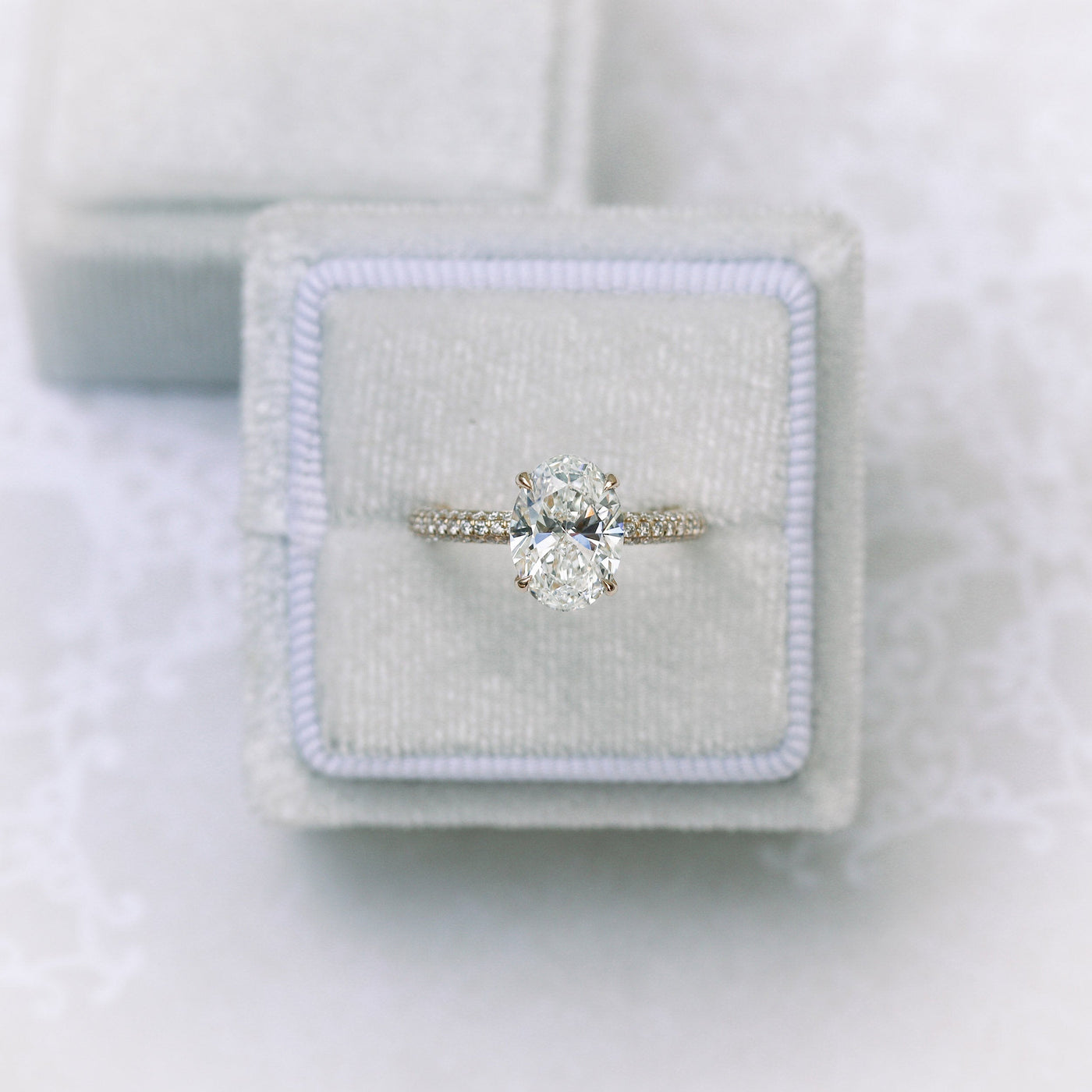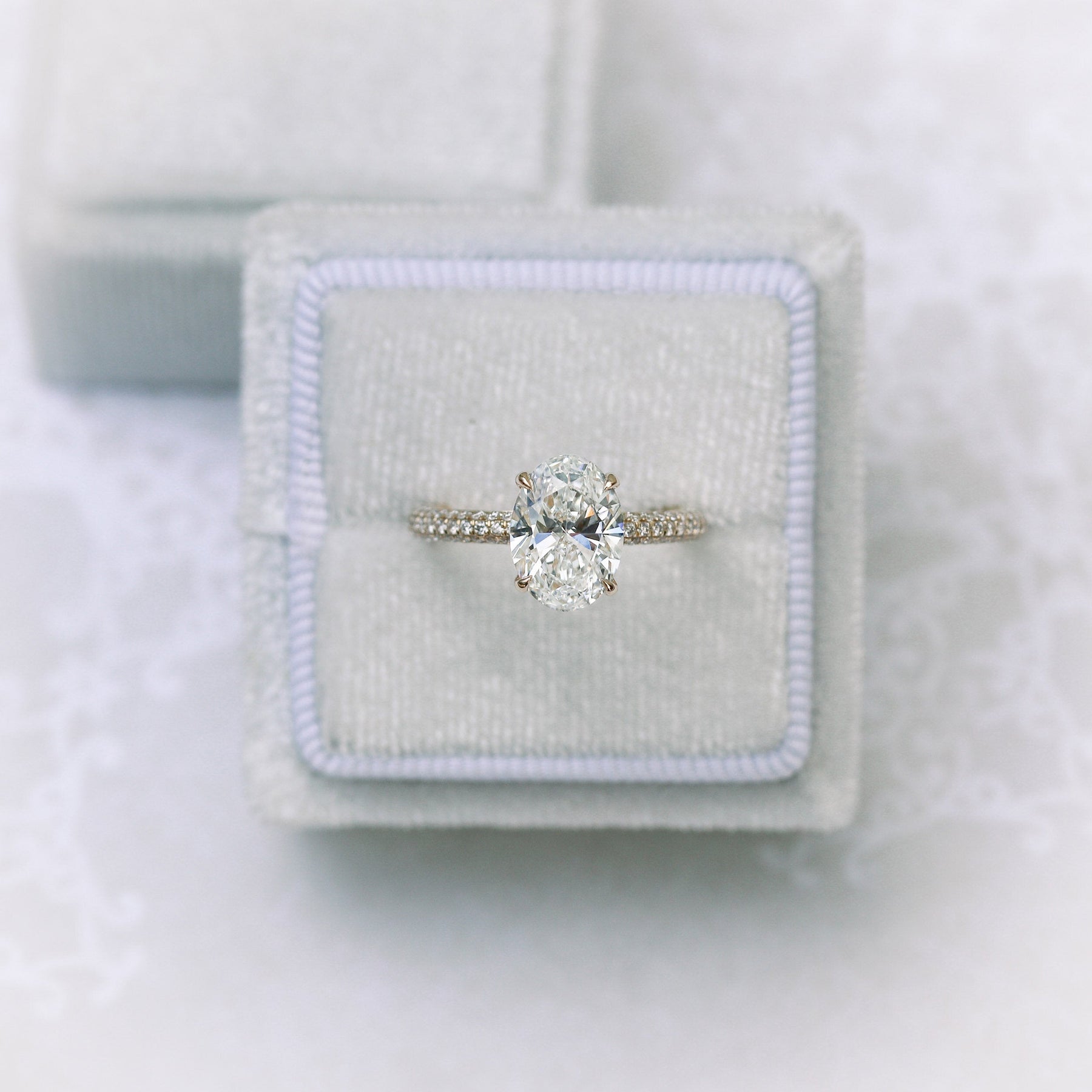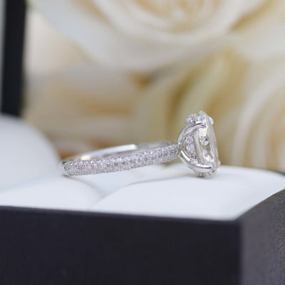 1.50CT Oval Cut Moissanite Three Sided Pave Diamond Engagement Ring
