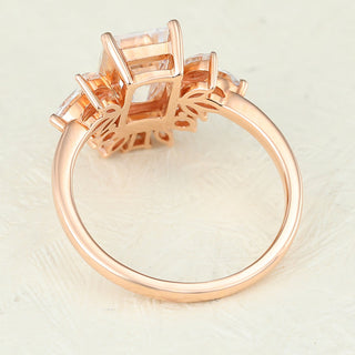 1.60 CT Emerald Shaped Moissanite Cluster Engagement Ring