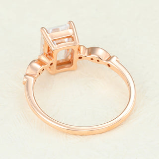 1.60 CT Emerald Shaped Moissanite Milgrain Pave Engagement Ring