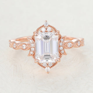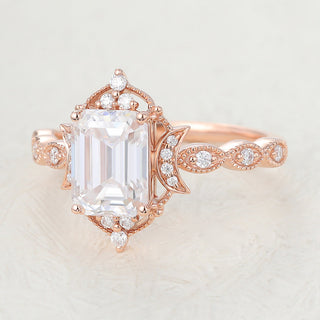 1.60 CT Emerald Shaped Moissanite Vintage Engagement Ring