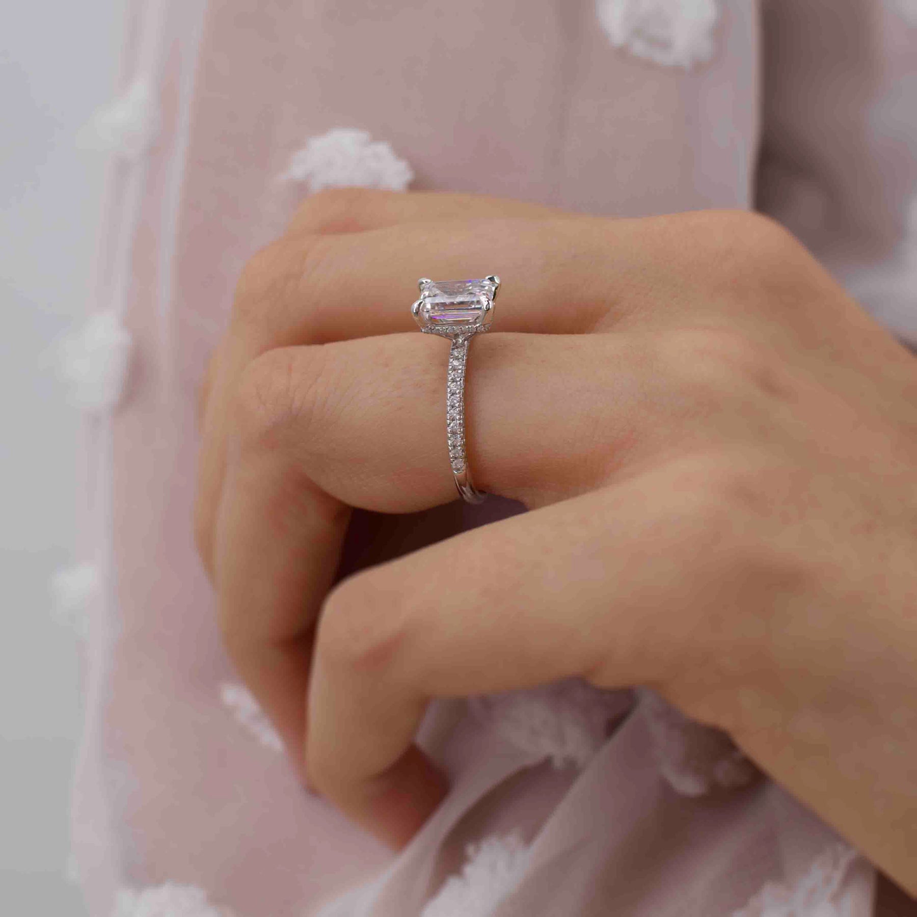 1.75 CT Emerald Shaped Moissanite Hidden Halo Style Engagement Ring
