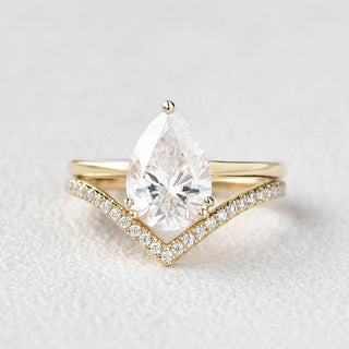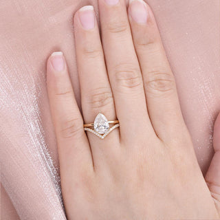 1.80CT Pear Solitaire Moissanite Engagement Ring with Curved Wedding Band