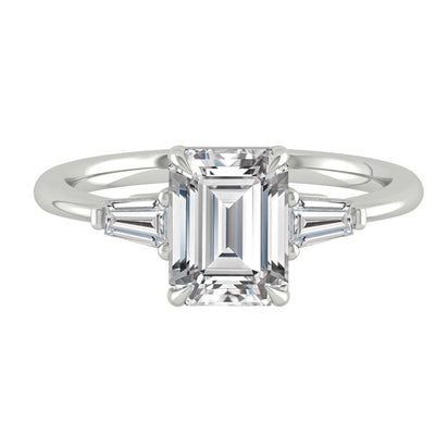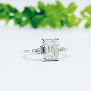 1.9 CT Emerald Cut Three Stone Moissanite Engagement Ring
