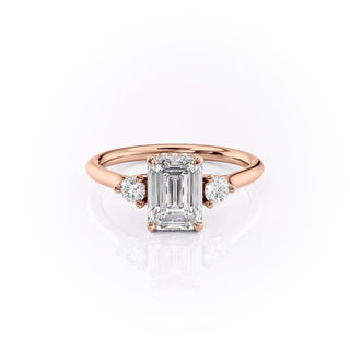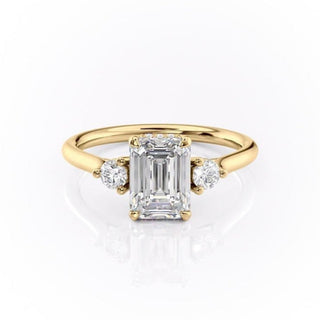 1.91 CT Emerald Cut Three Stone Moissanite Engagement Ring