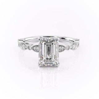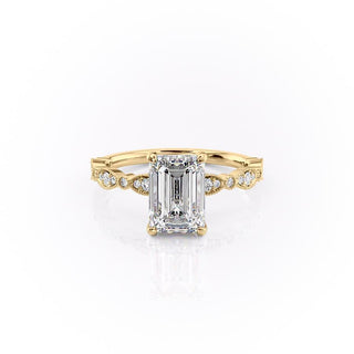 1.91 CT Emerald Solitaire Pave Setting Moissanite Engagement Ring