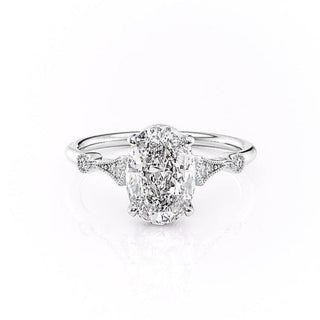 1.91 CT Oval Cut Solitaire Milgrain Pave Set Moissanite Engagement Ring