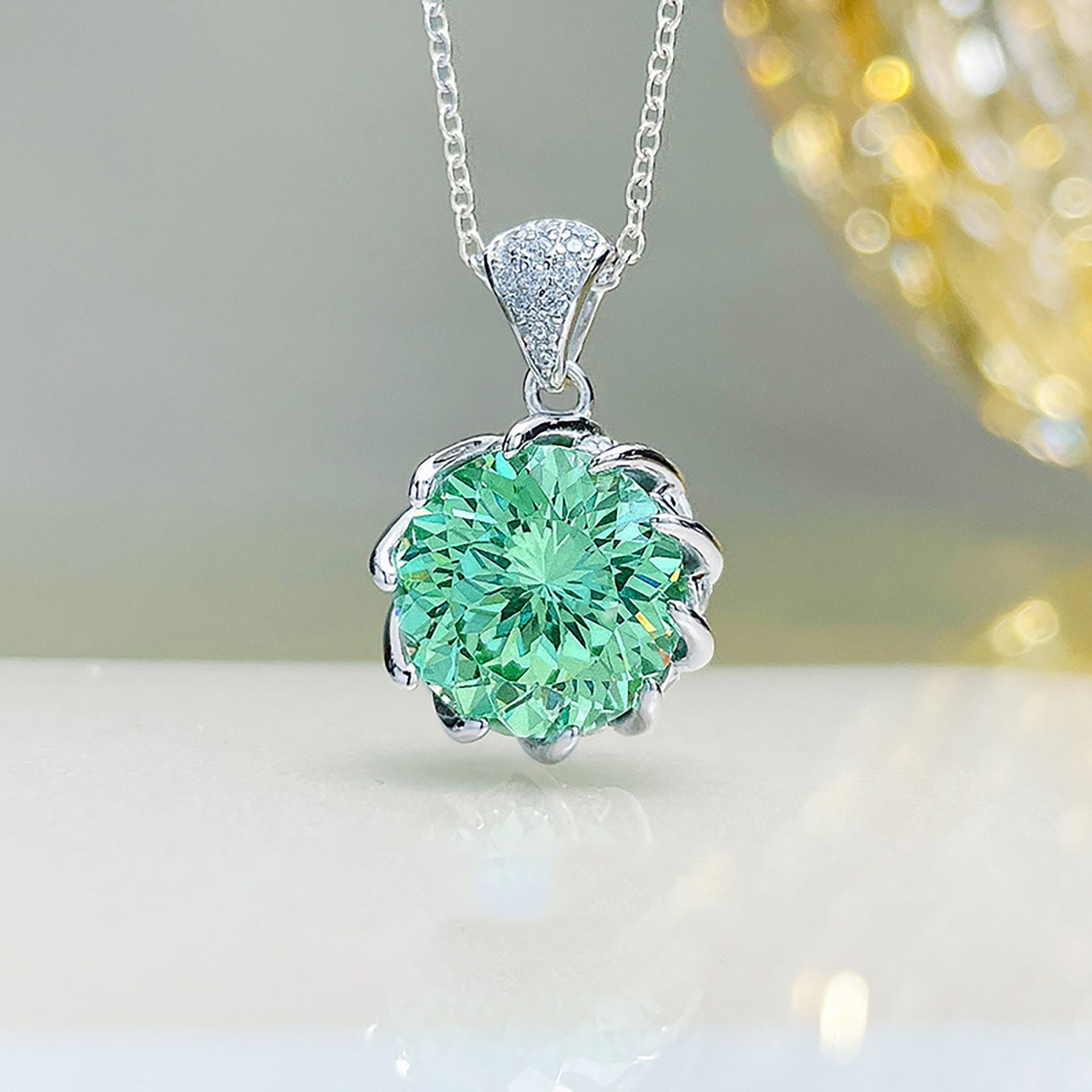 10CT Fancy Green Round Moissanite Diamond Necklace for Women