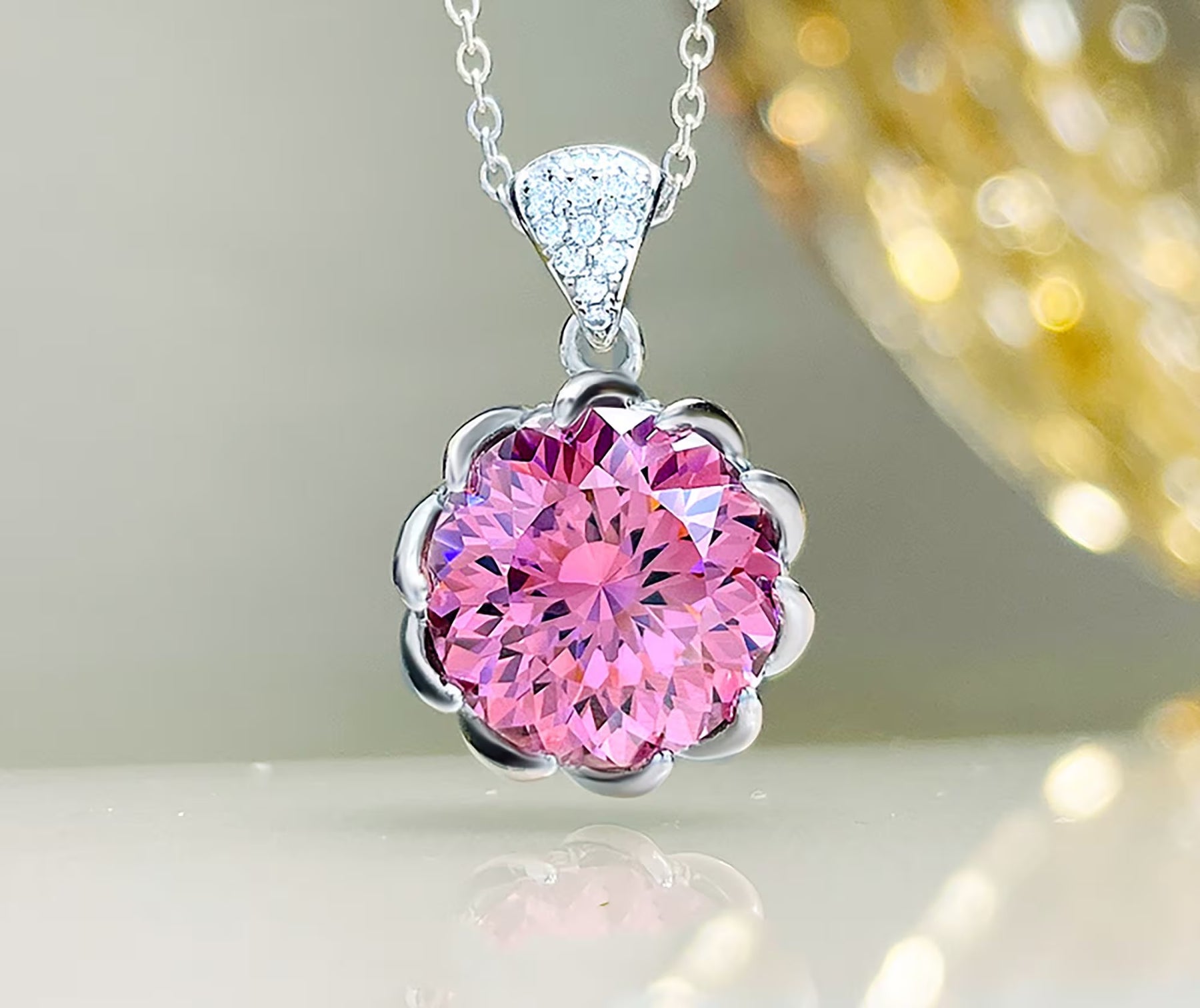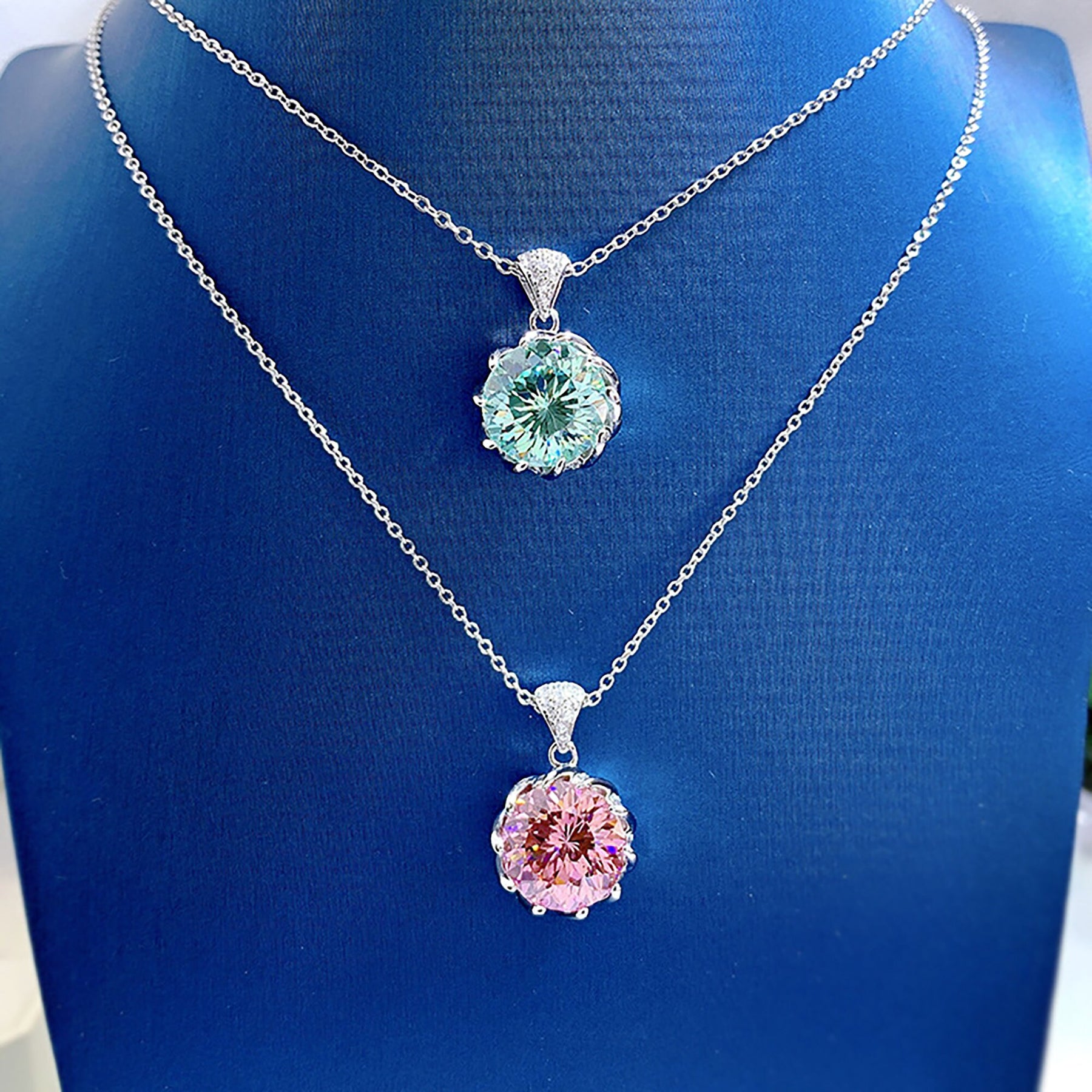 10CT Fancy Pink Round Moissanite Diamond Necklace for Women