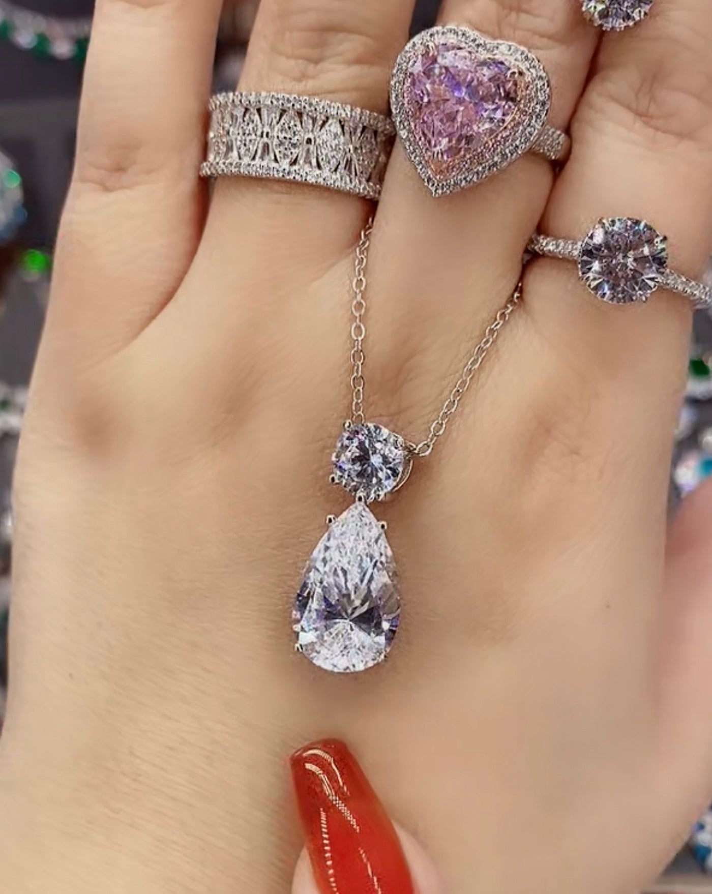 12Ct Round & Pear Moissanite Two Stone Diamond Necklace for Her