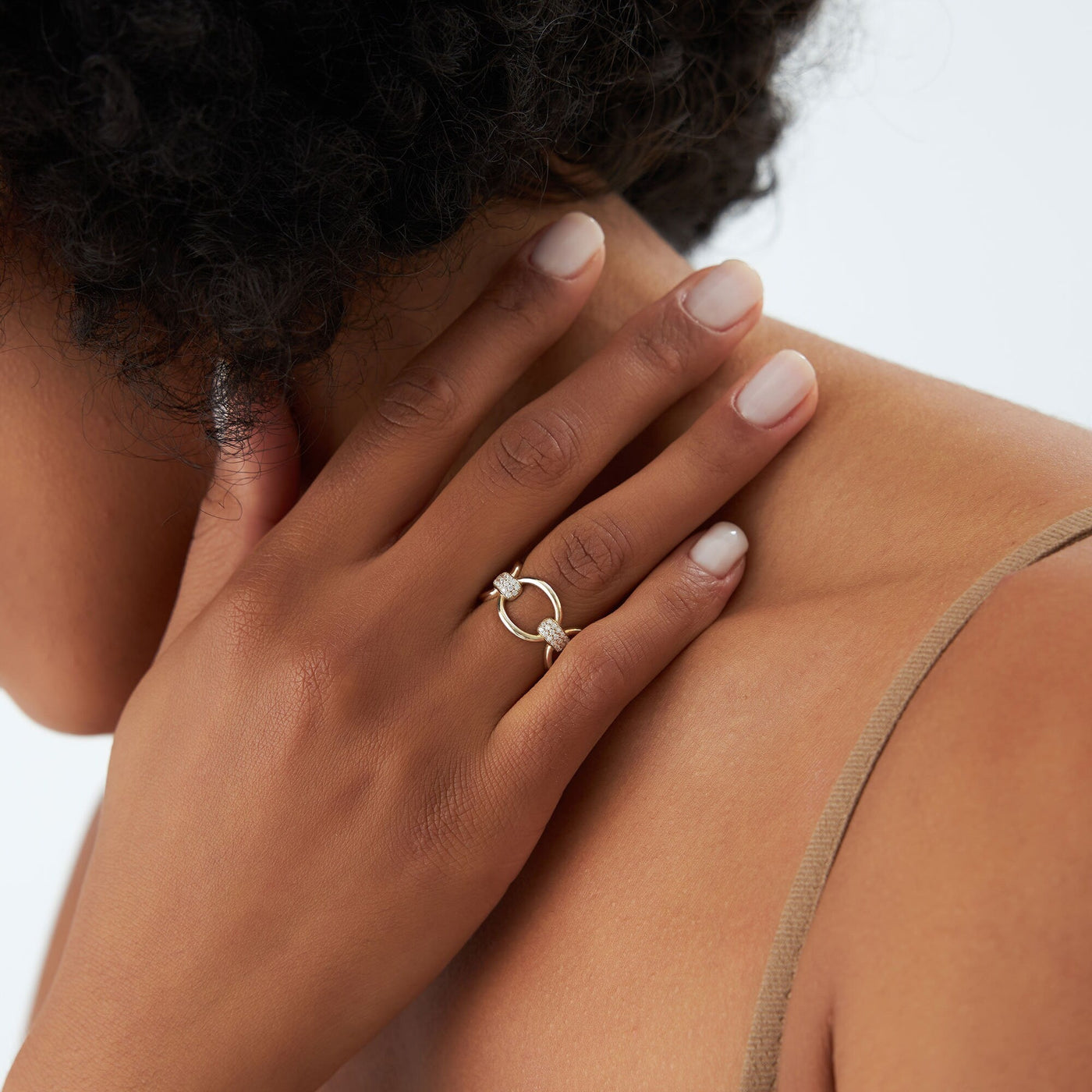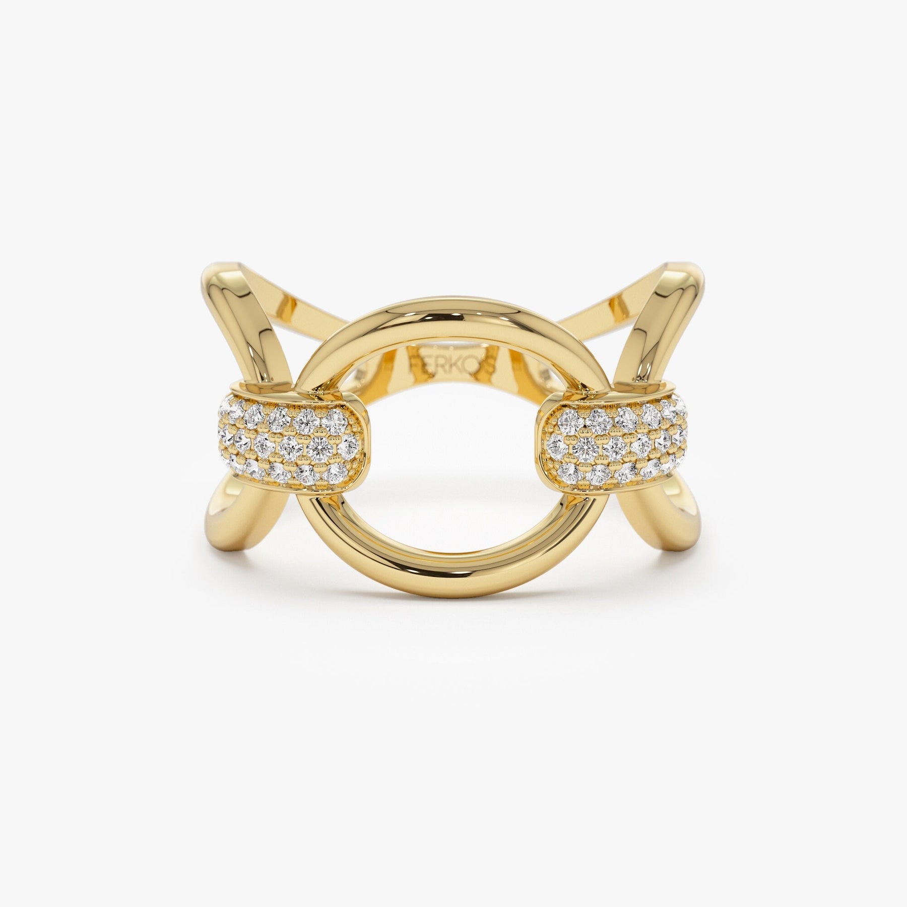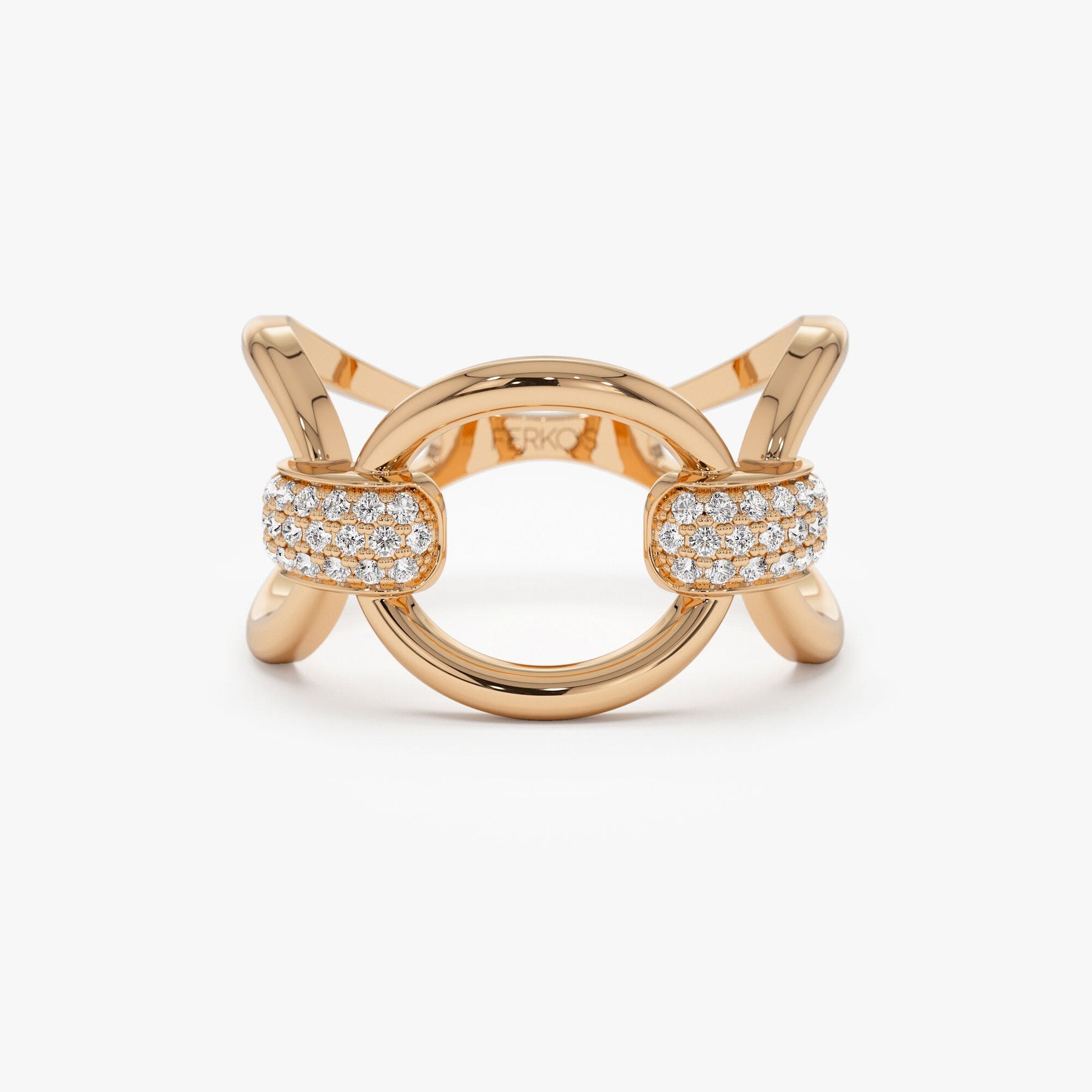18k Solid Gold Bold Loop Diamond Wedding Ring for Women