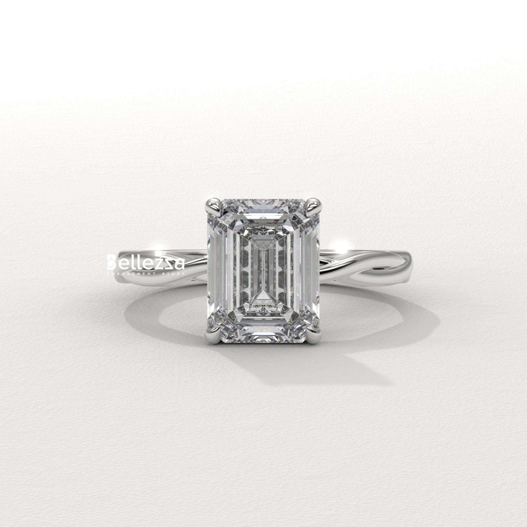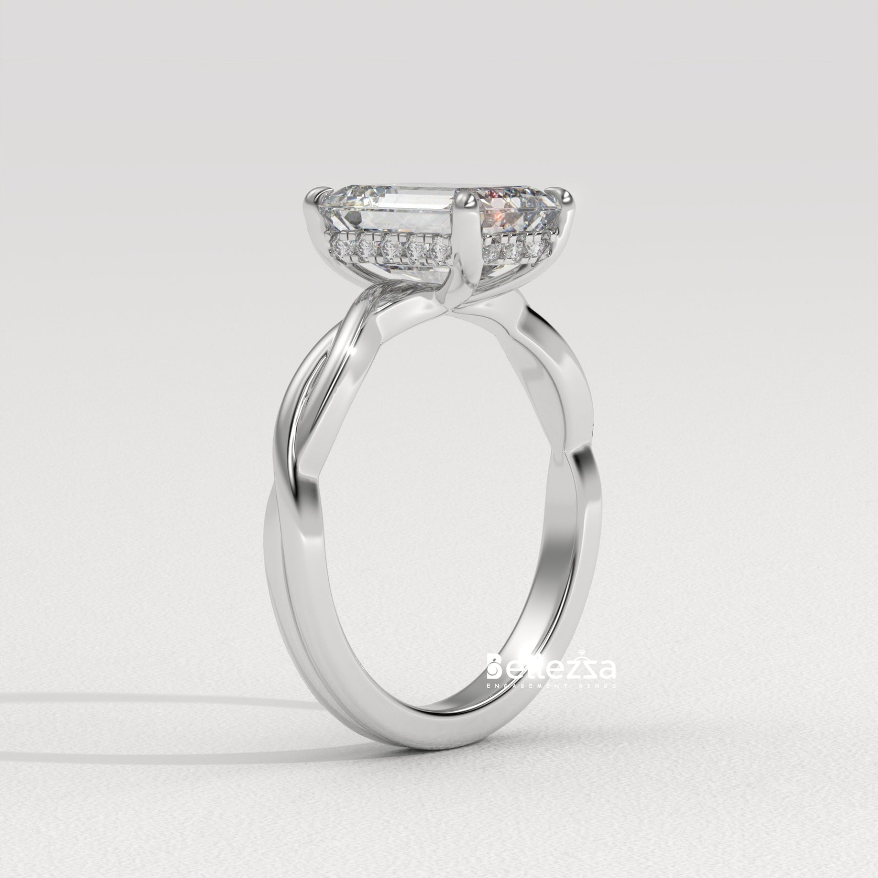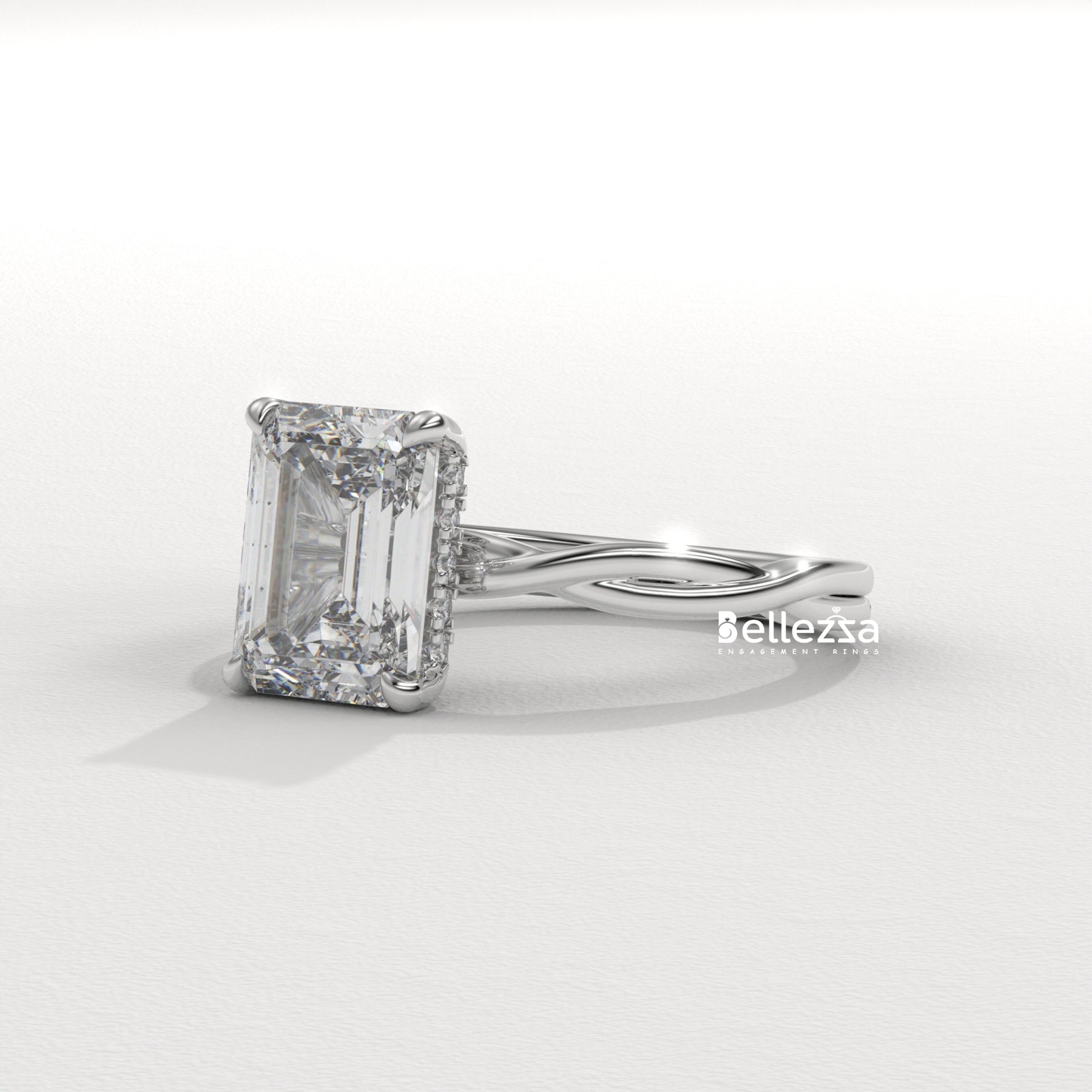 2.0-3.0CT Emerald Cut Twisted Hidden Halo Lab Grown Engagement Ring