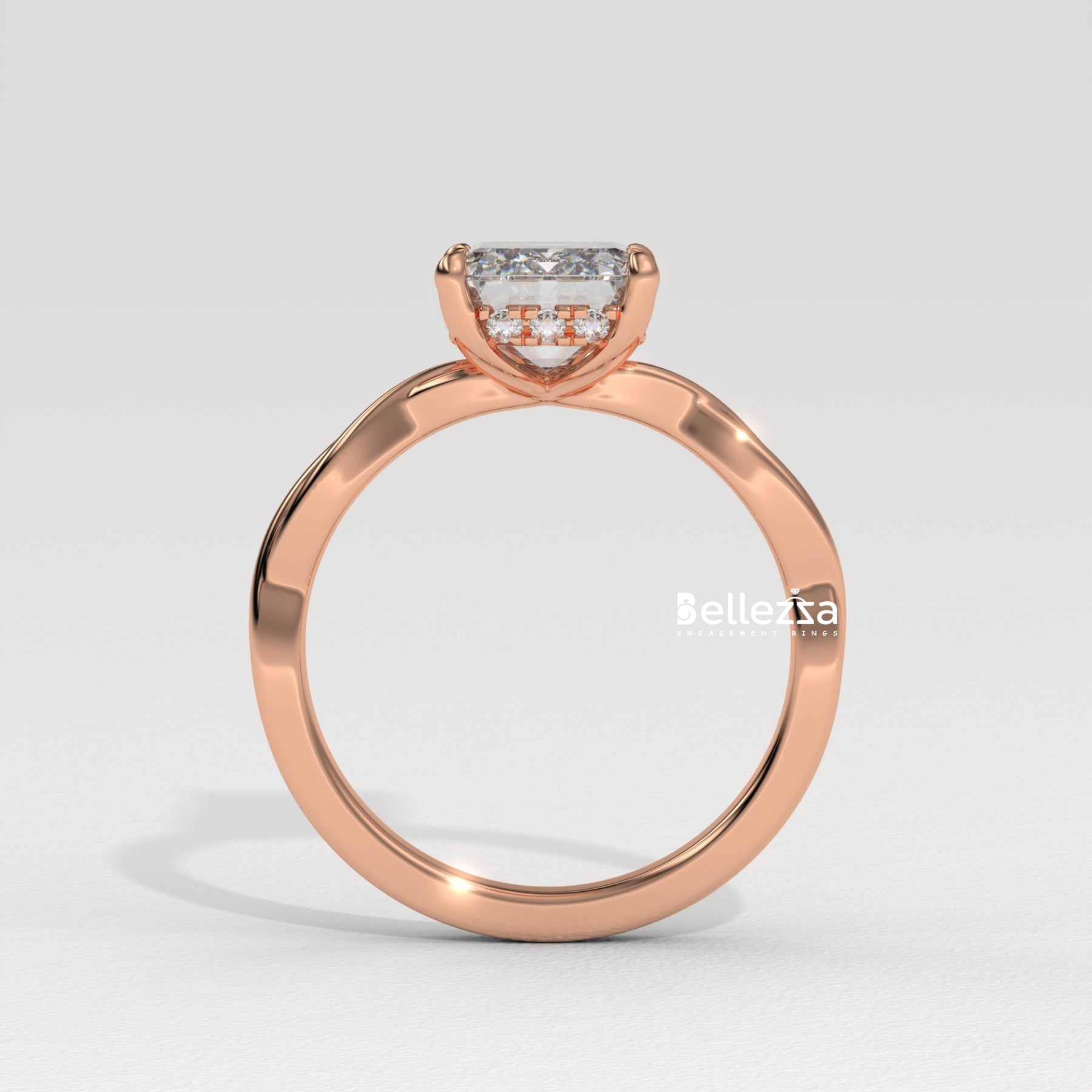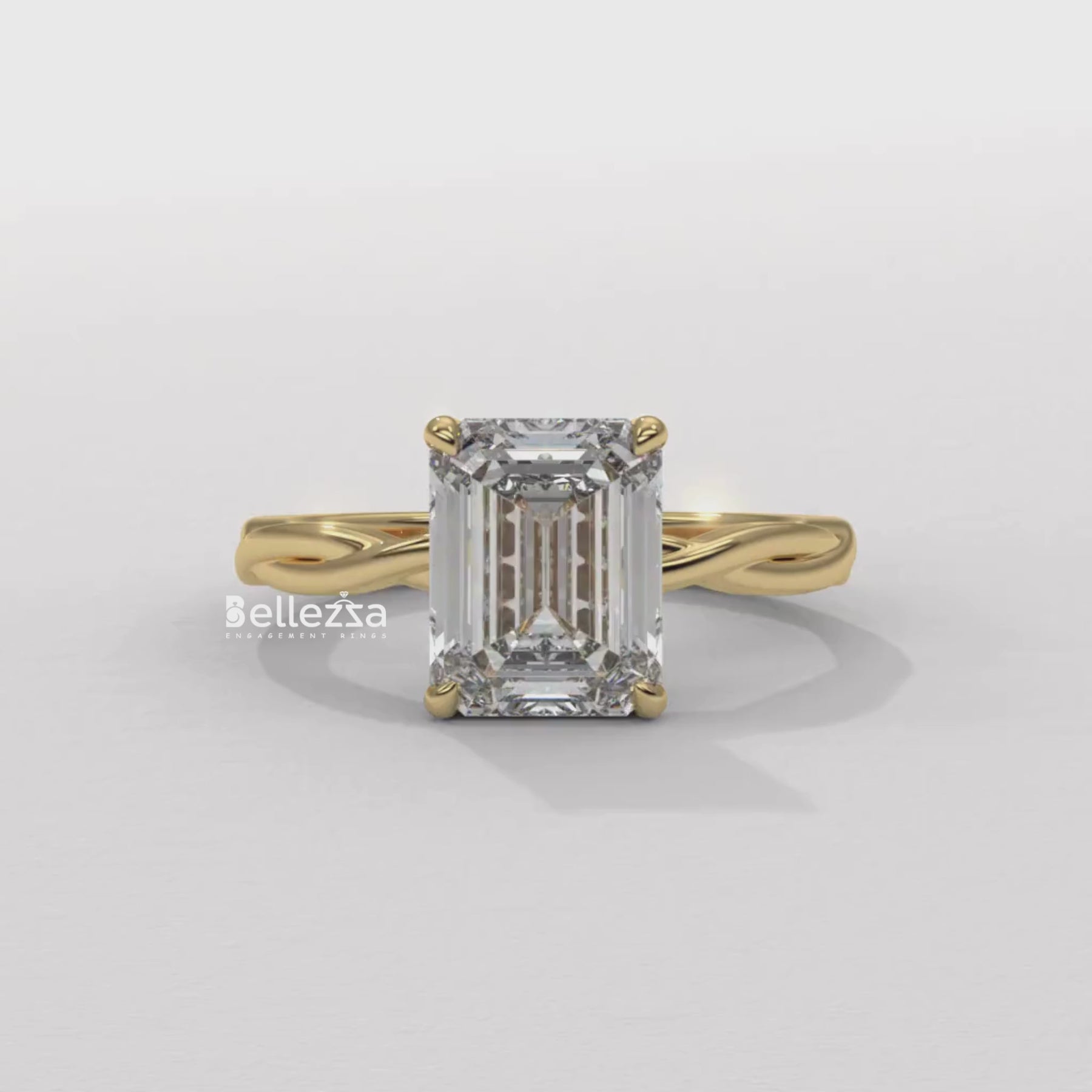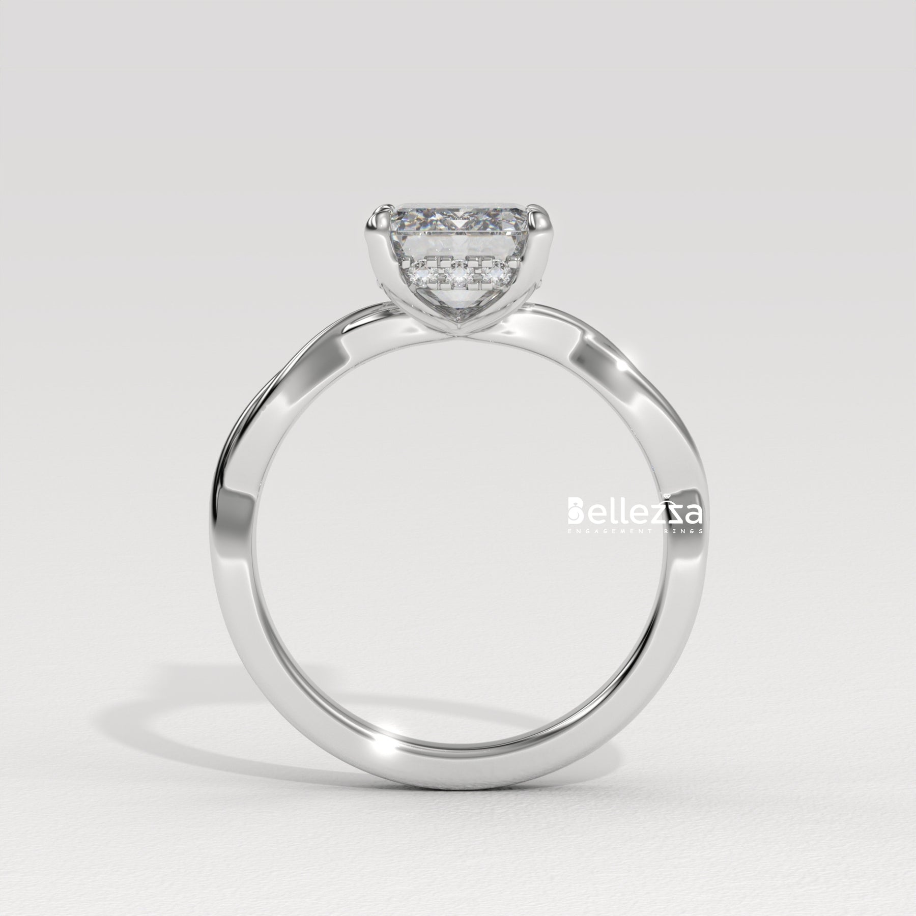 2.0-3.0CT Emerald Cut Twisted Hidden Halo Lab Grown Engagement Ring