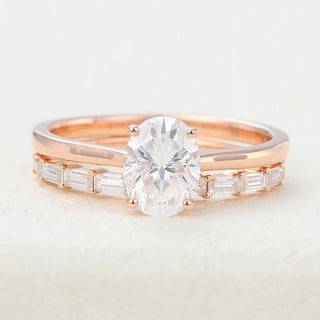 2.0 CT Oval Moissanite Solitaire Bridal Ring Set
