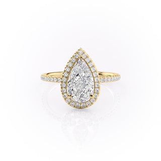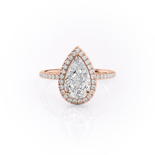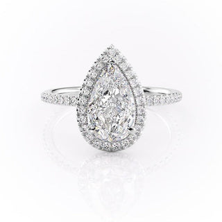 2.0 CT Pear Cut Halo Pave Moissanite Engagement Ring