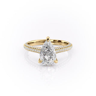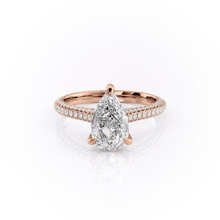 2.0 CT Pear Cut Solitaire Triple Pave Setting Moissanite Engagement Ring