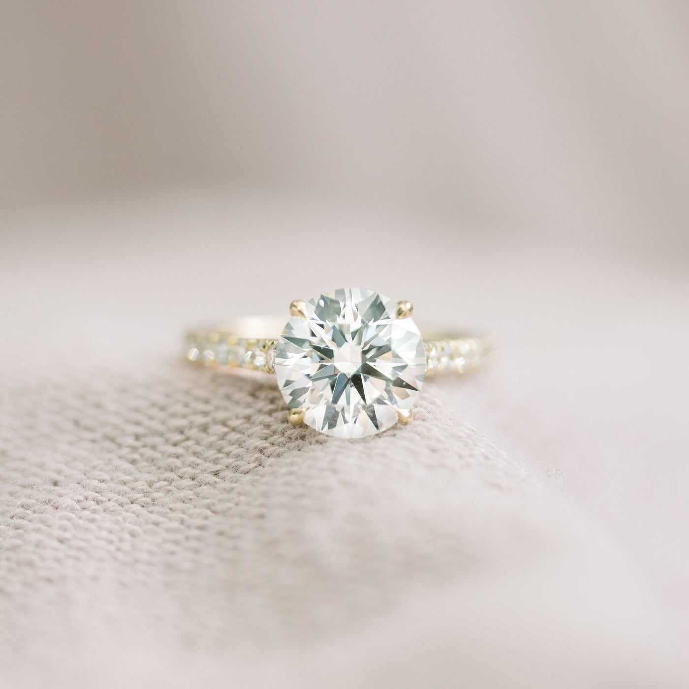 2.0CT Round Brilliant Cut Moissanite Cathedral Pave Diamond Engagement Ring