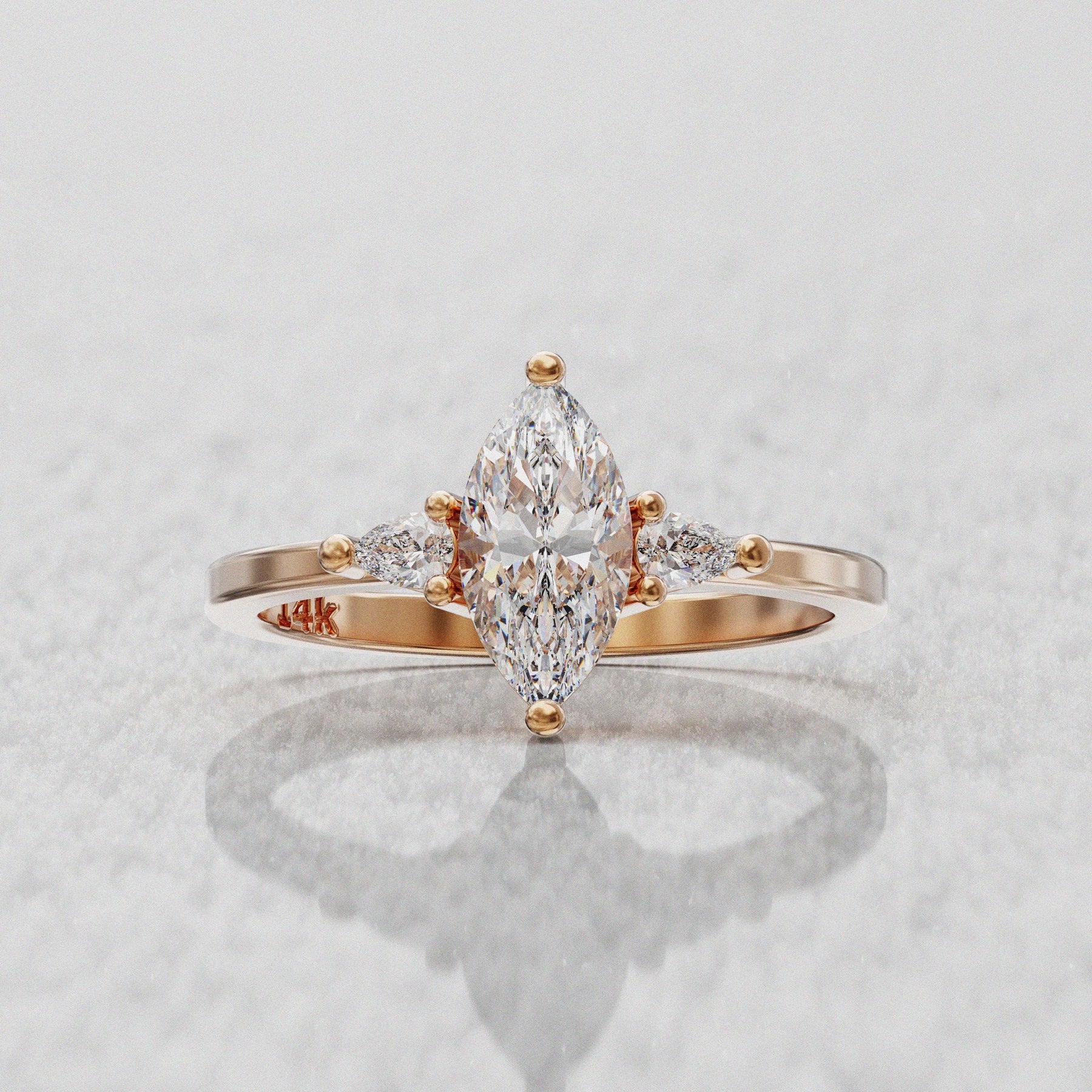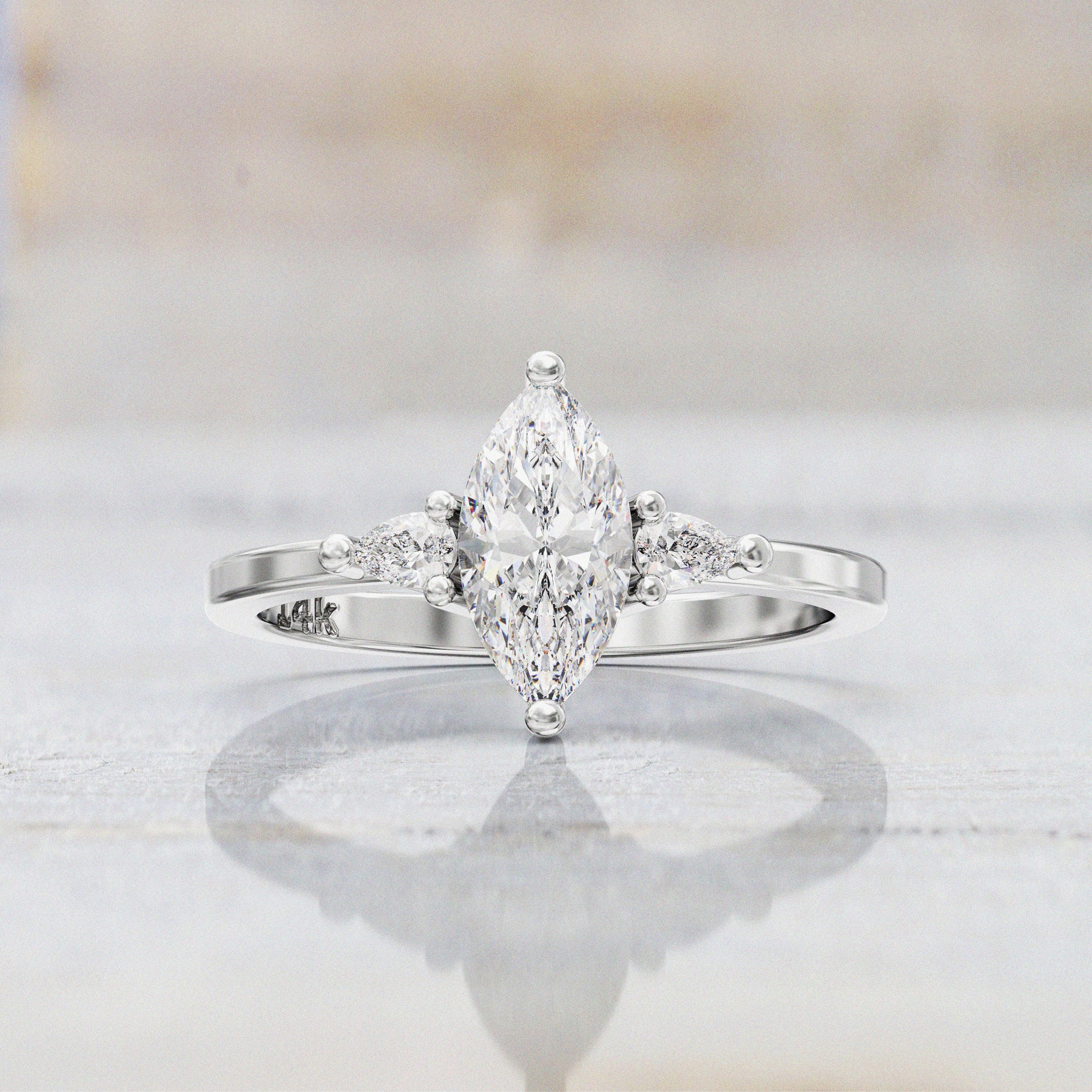 0.7 CT Marquise Cut Moissanite Three Stone Engagement Ring