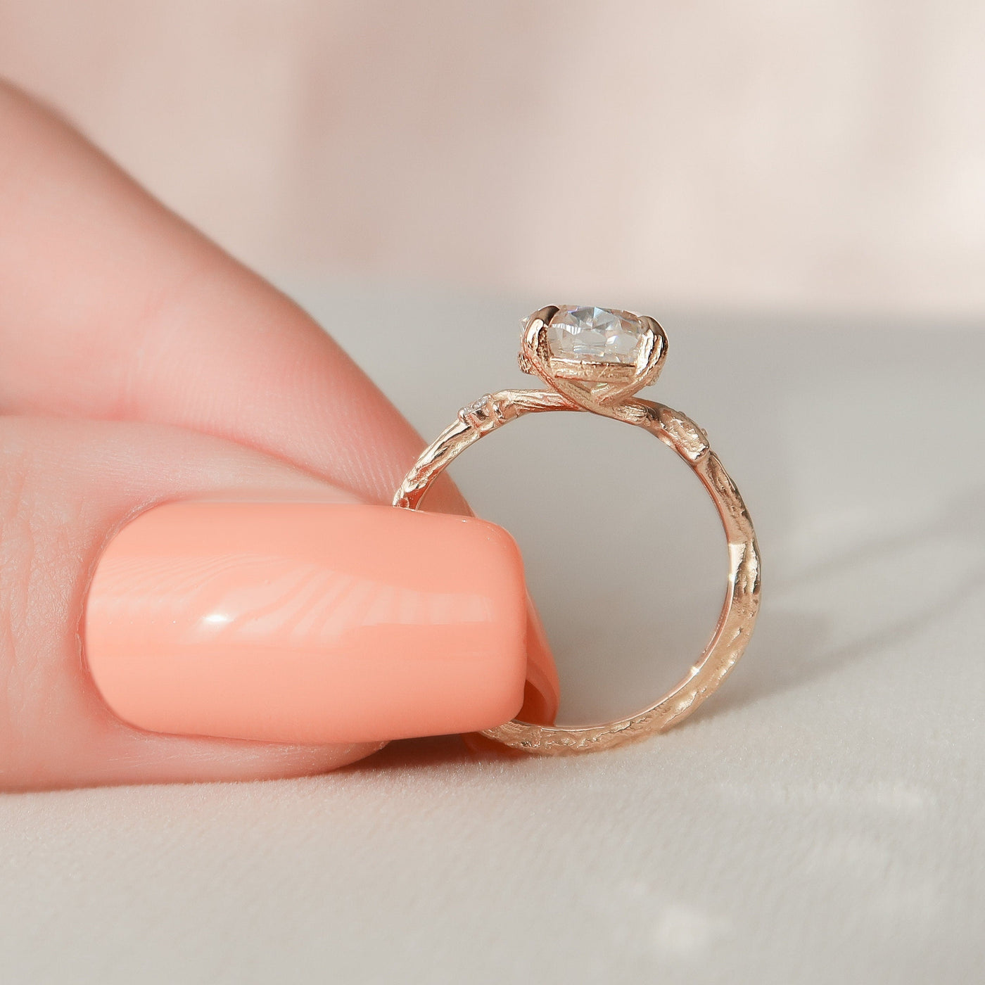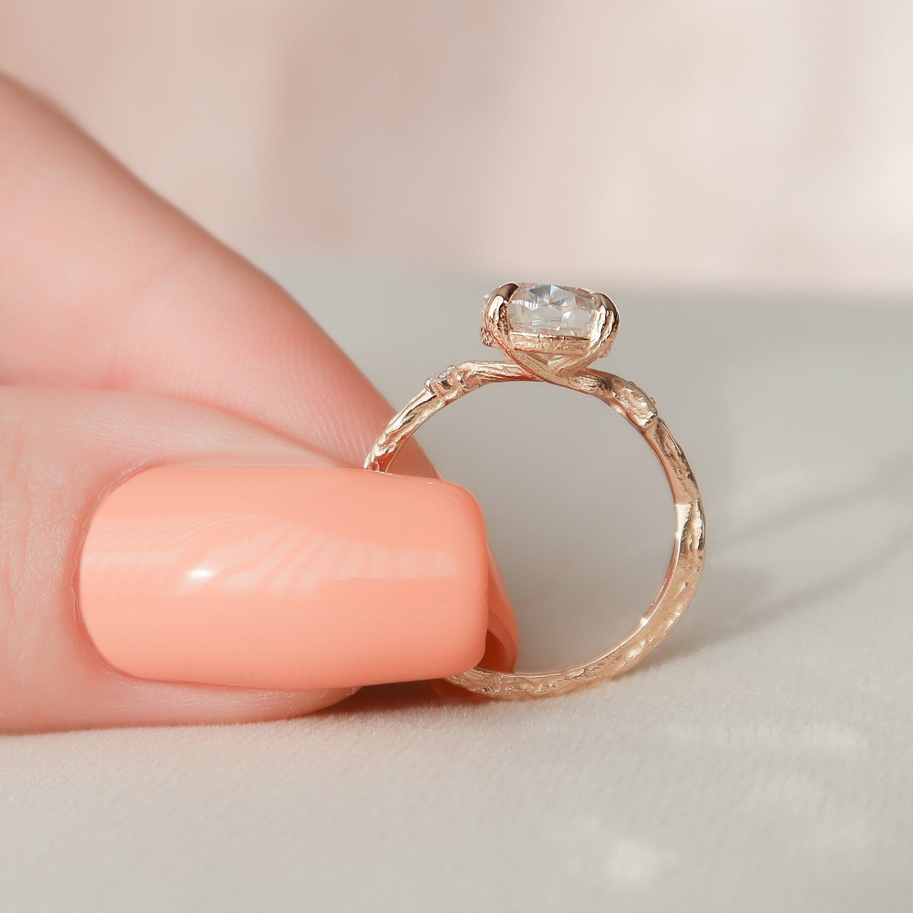 ✥ Elevate your engagement with our 2.0CT Oval Cut Moissanite Branches Engagement Ring, a true masterpiece of nature-inspired design. This enchanting ring captures the essence of love and growth, symbolized by the delicately intertwined branches that cradle the dazzling oval-cut moissanite centerpiece. The oval moissanite, with its brilliant sparkle and fire, represents the eternal flame of your love, while the branches reaching out from each side reflect the growth and strength of your relationship. Crafted with precision in every detail, this ring is a blend of artistry and elegance. The choice of moissanite, renowned for its brilliance and ethical sourcing, makes it a responsible and stunning option. Whether you're proposing under the shade of your favorite tree or simply seeking a unique and meaningful symbol of your commitment, this engagement ring is the perfect choice to start your journey together on a beautifully natural note. It's not just a ring; it's a testament to your love's growth, beauty, and enduring strength.