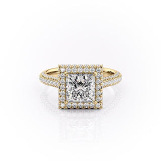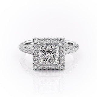 2.08 CT Princess Cut Double Halo Moissanite Engagement Ring