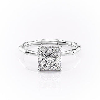 2.08 CT Princess Cut Solitaire Hidden Halo Setting Moissanite Engagement Ring