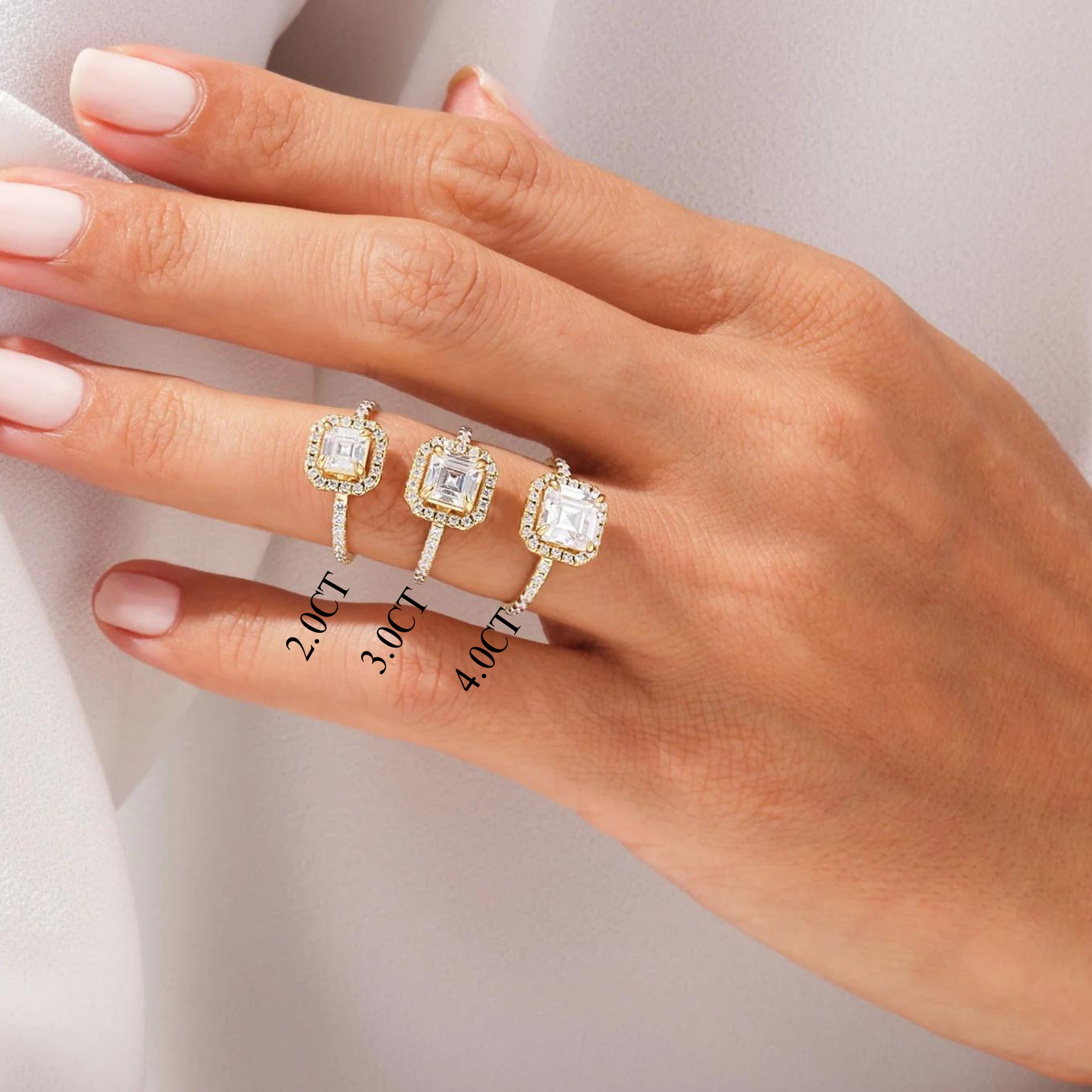 2.0CT Asscher Diamond Halo Pave Setting Moissanite Engagement Ring