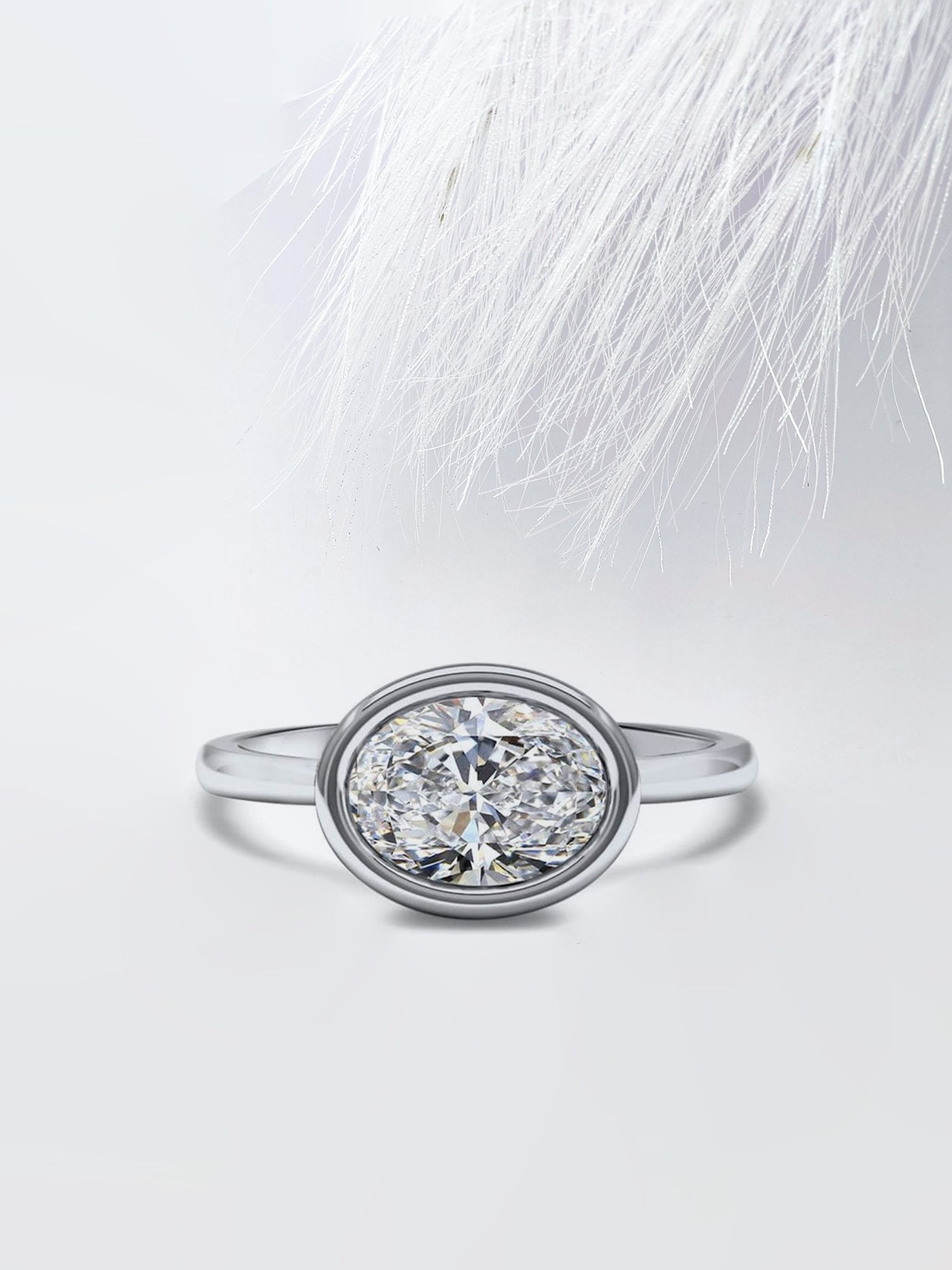 2.0CT East West Oval Cut Bezel Moissanite Diamond Engagement Ring For Her