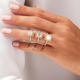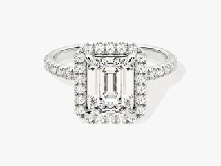 2.0CT Emerald Diamond Halo Pave Setting Moissanite Engagement Ring