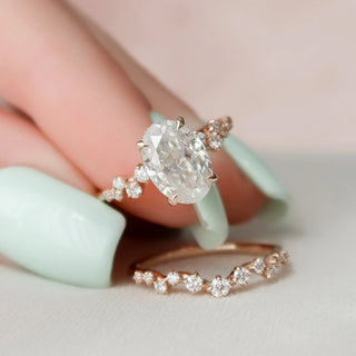 2.0CT Oval Cut Moissanite Halo Bridal Engagement Ring Set