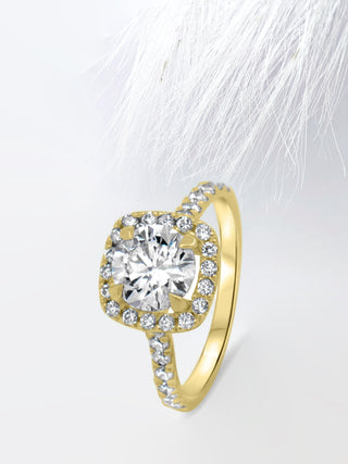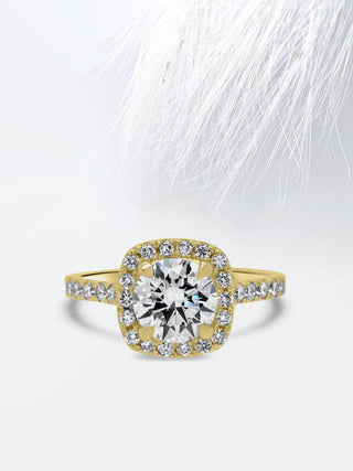2.0CT Pear Cut Halo Moissanite Diamond Engagement Ring in Yellow Gold