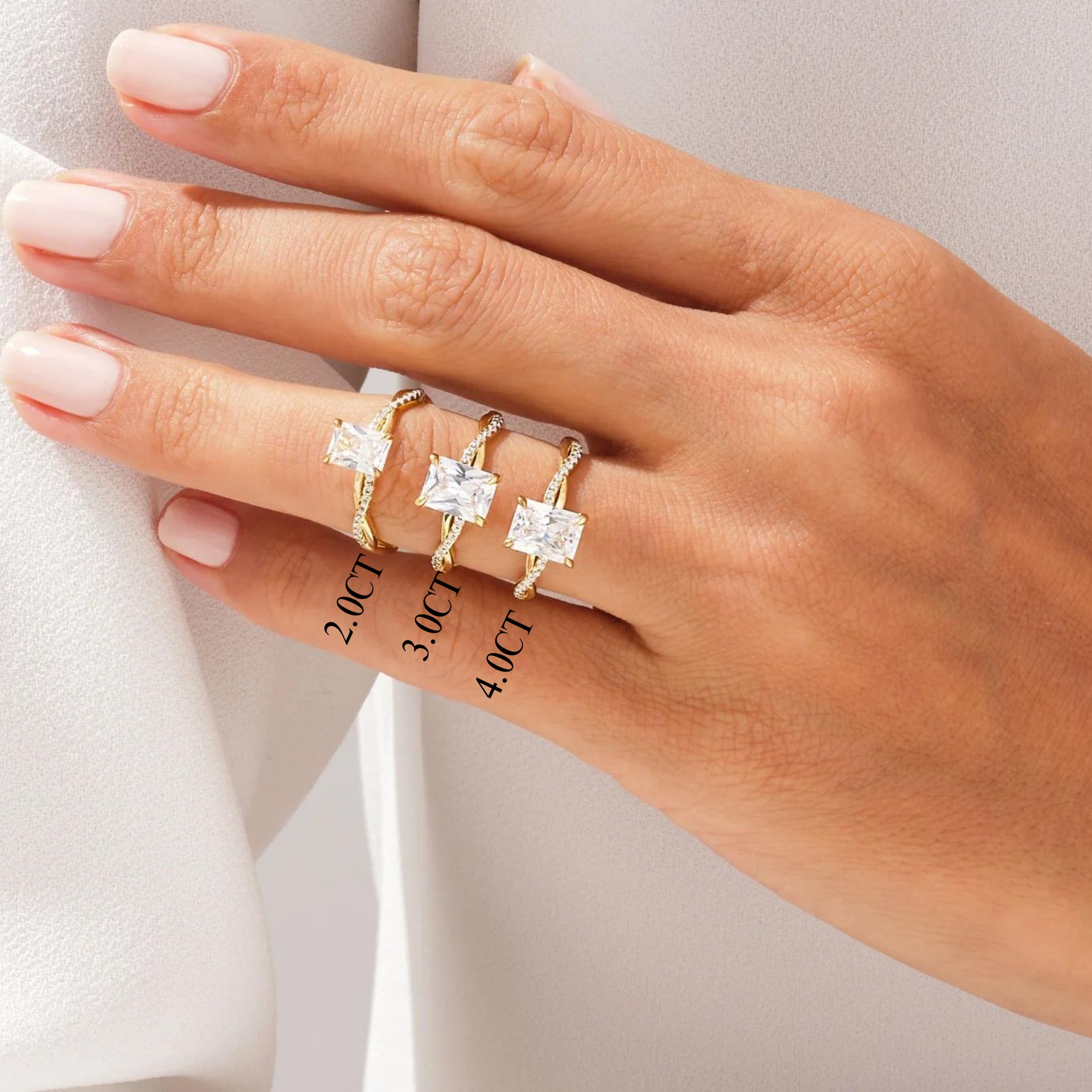 2.0CT Radiant Diamond Twisted Pave Setting Moissanite Engagement Ring