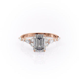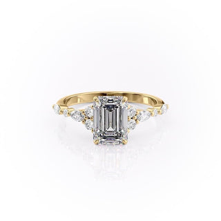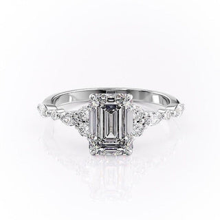 2.10 CT Emerald Cut Cluster Moissanite Engagement Ring