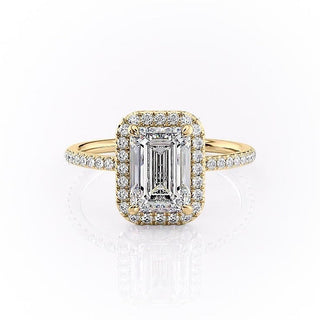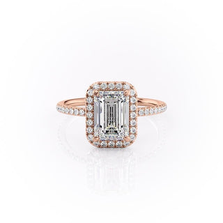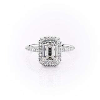 2.10 CT Emerald Cut Halo Pave Setting Moissanite Engagement Ring
