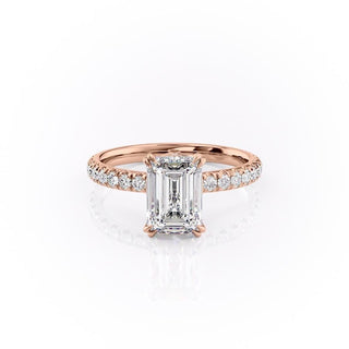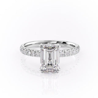 2.10 CT Emerald Cut Solitaire Pave Setting Moissanite Engagement Ring