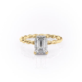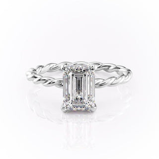 2.10 CT Emerald Cut Solitaire Twisted Rope Moissanite Engagement Ring