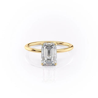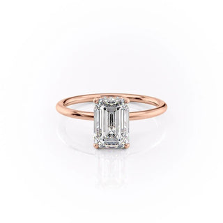 2.10 CT Emerald Solitaire Hidden Halo Setting Moissanite Engagement Ring
