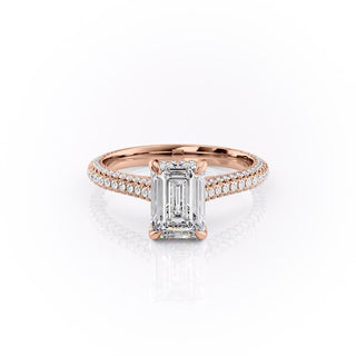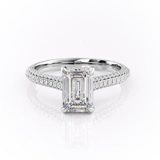 2.10 CT Emerald Solitaire Triple Pave Moissanite Engagement Ring