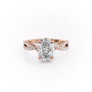 2.10 CT Oval Solitaire Cross Over Pave Set Moissanite Engagement Ring