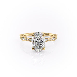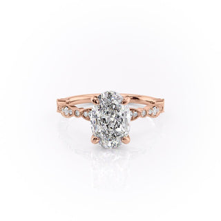 2.10 CT Oval Solitaire & Milgrain Pave Moissanite Engagement Ring