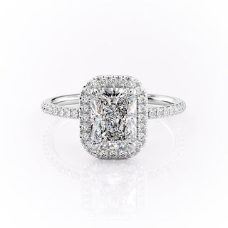 2.10 CT Radiant Cut Halo Style Moissanite Engagement Ring