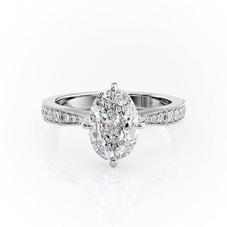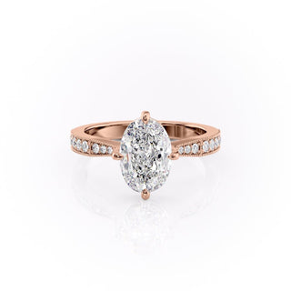 2.10 Oval Solitaire Channel Pave Setting Moissanite Engagement Ring
