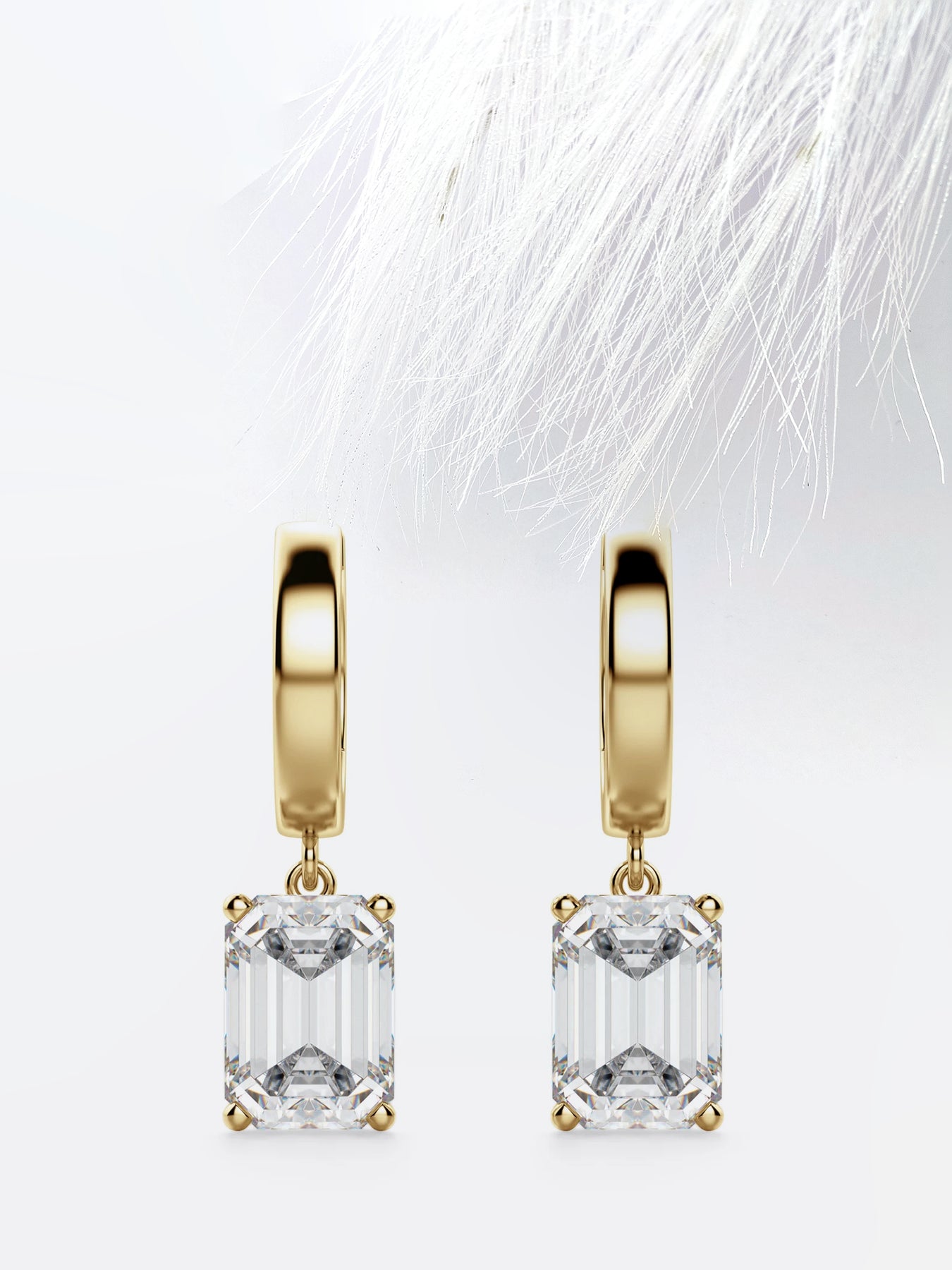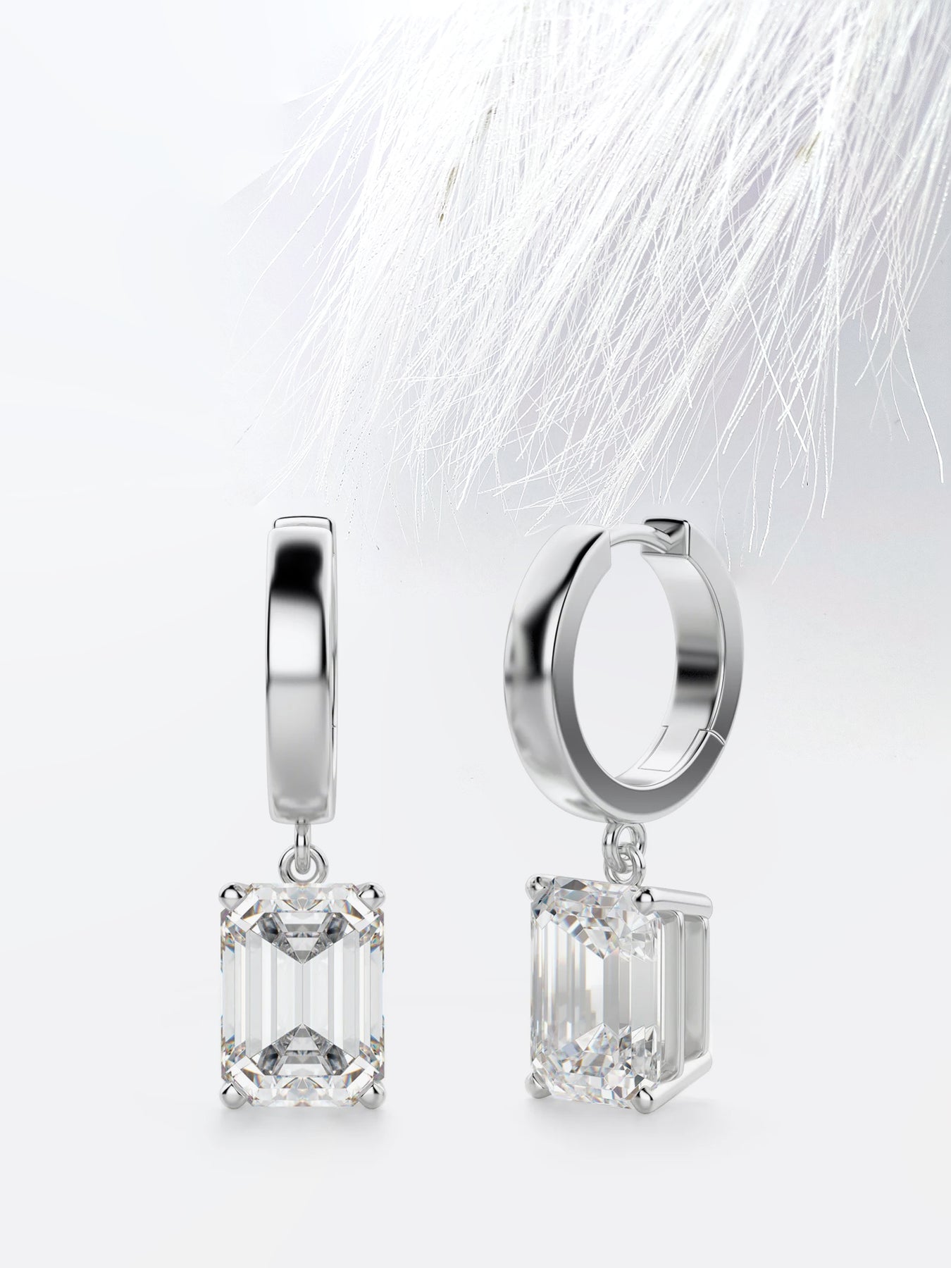 ✥ Introducing our 2.12CT Emerald Cut Drop Moissanite Stud Diamond Earrings for Women, a stunning combination of sophistication and elegance. Each earring features a captivating 2.12 carat emerald-cut Moissanite stone delicately suspended from a classic stud design, exuding timeless charm and brilliance. The emerald cut's sleek lines and bold facets add a touch of glamour to these earrings, making them perfect for special occasions or adding a statement to your everyday look. Crafted with ethically sourced Moissanite stones, renowned for their exceptional sparkle and durability, these earrings offer a sustainable and eco-friendly alternative to traditional diamonds. Elevate your style with these exquisite Emerald Cut Drop Moissanite Stud Diamond Earrings, and adorn yourself with beauty and grace that shines from every angle.