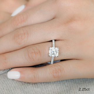 2.25CT Cushion Cut Moissanite Cathedral Pave Diamond Engagement Ring
