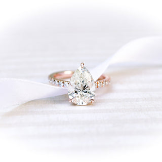 2.25CT Pear Cut Moissanite Petite Pave Diamond Engagement Ring