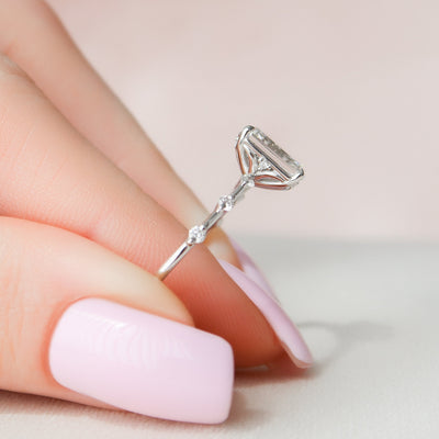 2.50CT Emerald Cut Petite Pave Moissanite Diamond Engagement Ring